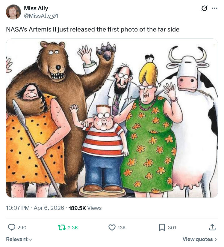 We — potentially, there’s a couple of big inflection points ahead — stand on the very edge of a mountain of achievement that will take us to the stars, make us a multi-planet species and make our descendants healthy and wealthy beyond the dreams of avarice. Which in turn will create more achievement, because that’s how it works. (And no, it won’t be paradise. No paradise in this sorry world where world means this universe.)