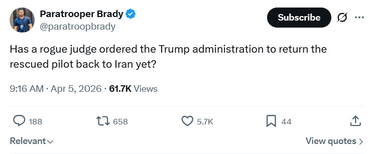 On the serious side, consider this an open thread to discuss the rescue of our airman or other amazing good news.