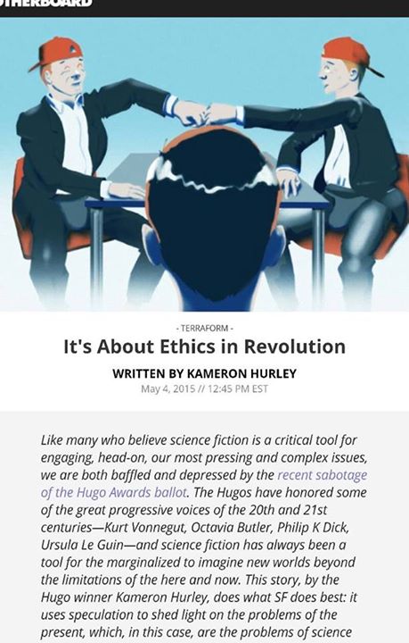 One thing you have to understand is that the establishment in SF is incredibly sincere. What I mean is they REALLY want to bring in the “victims” they perceive and give them places of honor. They do. And they want to read about “exotic” things and places, and people they consider victimized heroes.