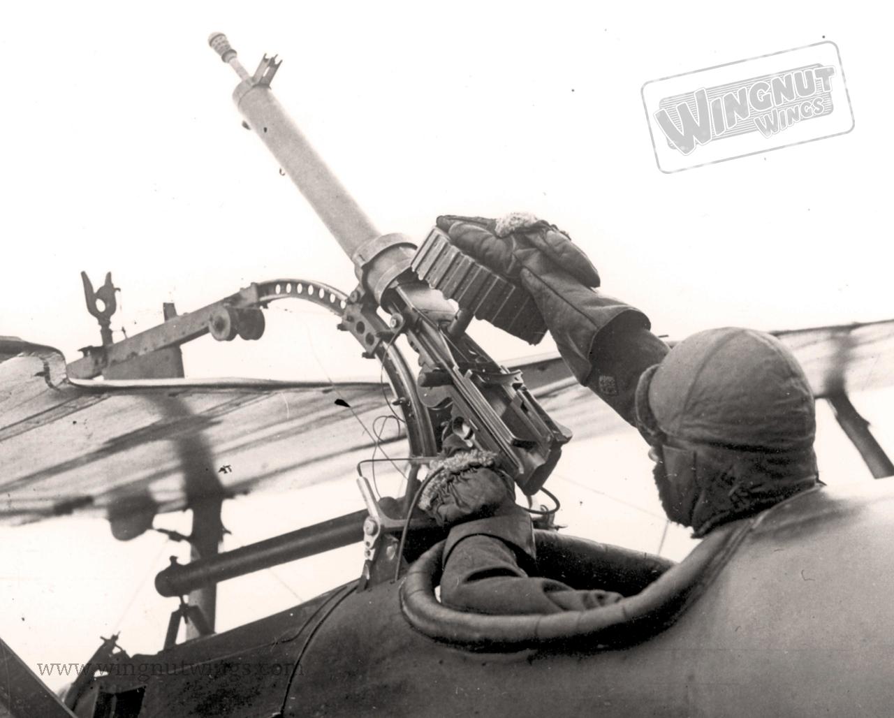 The Lewis Gun on an SE5 was mounted on a curved rail thingee called a “Foster Mount”, so a pilot in need of a reload had to swing the entire machine gun down through it’s arc on the rail until it was directly in front of him, remove the old magazine, replace it with a new one, and slide the thing back up into position for use: see photo: http://www.wingnutwings.com/ww/v9E3C7E03/www/products/model_kitsets/32003/archive_photos/Foster%20Mount%20and%20Lewis%20Gun%20SE.5a%20Hisso.jpg