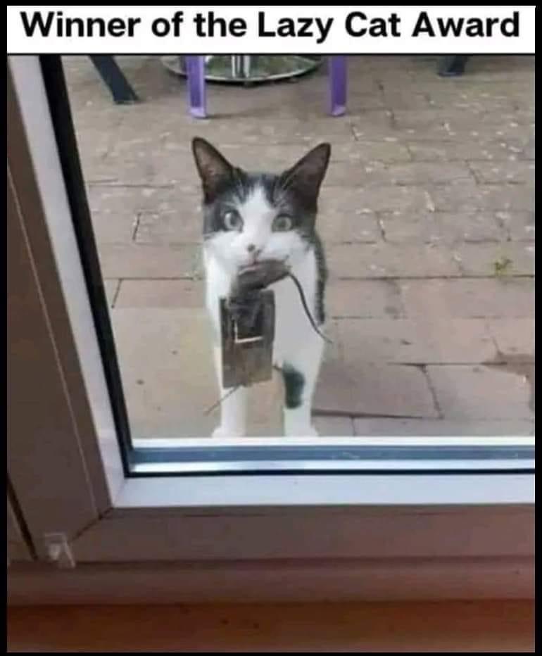 Doofus is gloating that he did not have to get wetterized. Now Nastycat hates him too. Later on he will come for snuggles like nothing happened. Until the next time. Nasty is pretty well grown up now, not the coltish little thing he was when he first came around. Still jumps right into trouble whenever he can.