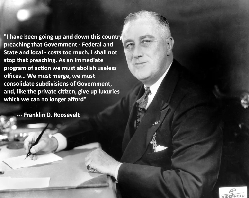 It does not apply if you eliminate whole departments or job categories – and that’s what needs to be done. You can’t shrink bureaucracy one person at a time.