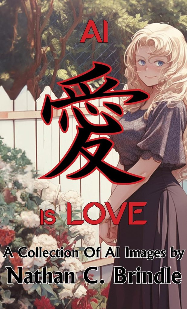 Thus, AI 愛 is Love is a collection of 65 images made using Artificial Intelligence tools and methods. Each image is the author’s loving re-imagination of his wife at various stages of her life, using old photographs and digital models and post-processing software, not to mention plain old-fashioned skull sweat coming up with prompts to feed the MidJourney AI in the first place. While the author cautions his readers that his wife actually doesn’t look entirely like the lovely ladies depicted (mostly because they all have long straight or wavy hair), he does wish to make clear that all of his love for his beautiful lady wife has been poured into the present book, which he humbly recommends for your consideration.