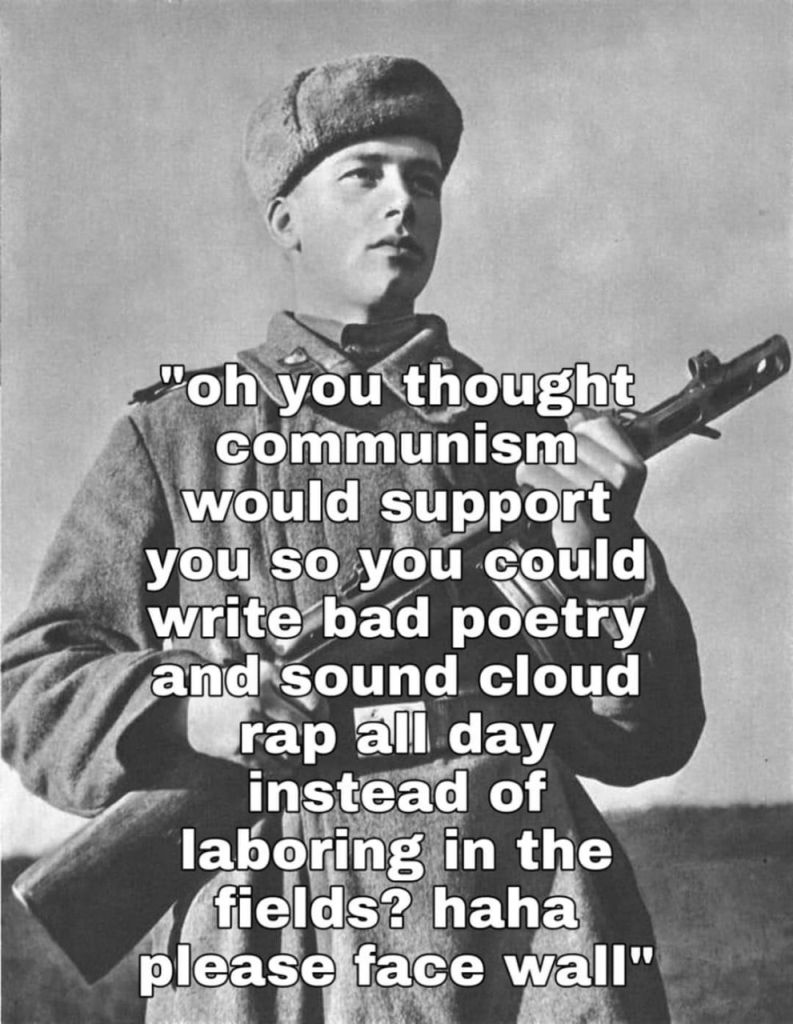 Communism is cult intellectualism for the terminally dumb. It sounds like it’s educated. Smart. Well, it sounds like that to those who did not earn their education with skull sweat and constant analysis. But it is all form, no substance.