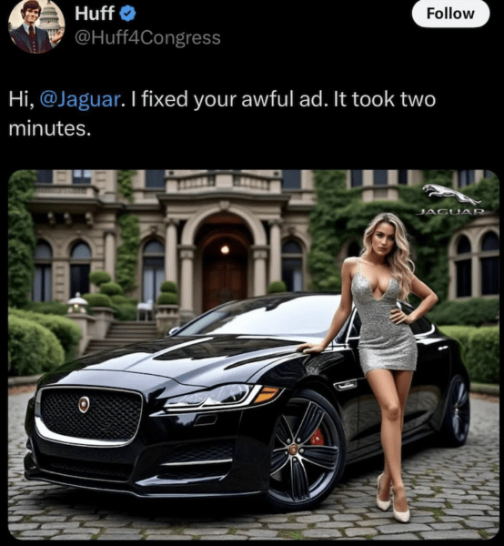 I’ll admit I haven’t taken time to watch the whole Jag commercial. From the glance at the muted autoplay on my phone Twitter app it looked more like a stupid “fashion” exhibition instead of a car commercial. Did they have an actual car in it? I didn’t get that far into it.