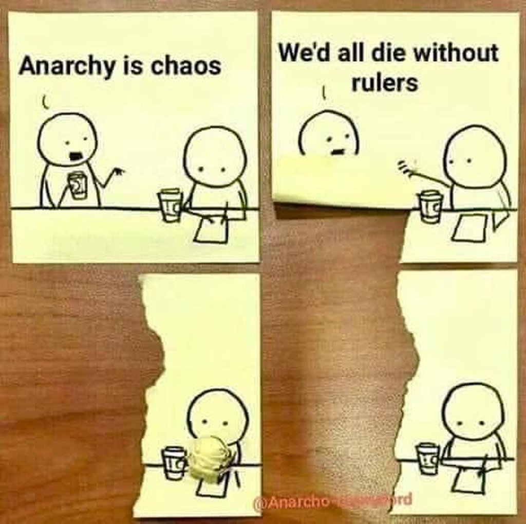Anarchists ignore the first one, Leftroids ignore the second.