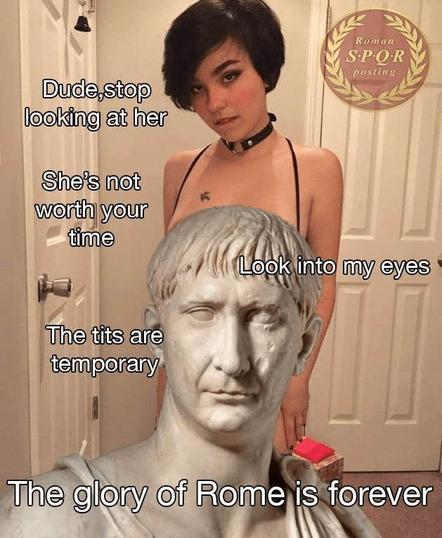 Caesar is full of crap and needs to get the hell out of the way with his false dichotomy. Pretty women with nice titties ARE the glory of Rome!