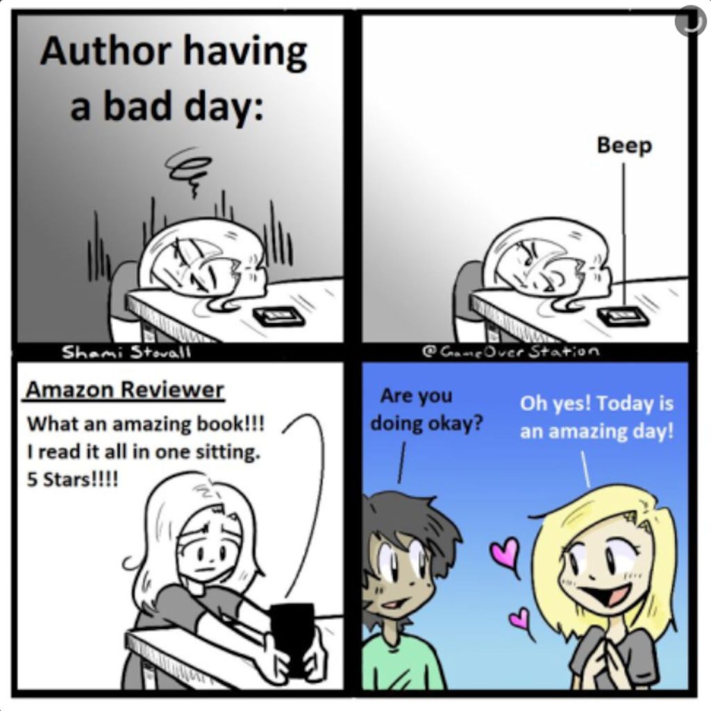 The writer one, yes. And the first coffee one, except black tea or diet soda. (For the first time ever, I had a title go #1 New Release in a category. I did a happy cat dance.)