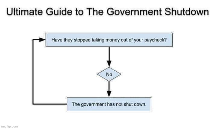 Same for the government, all of it, honestly. Yes, I know a couple of people who were doing needed functions for the government and who are right now in limbo. But the whole thing was so bloated, convoluted, overfed and over-wasteful it was going to collapse anyway.