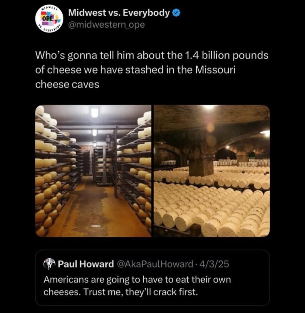 “Americans are going to have to eat their own cheese”. Right, try that again after you guys tried to copyright “cheddar cheese”. We love our own cheese! Cabot Alpine CHEDDAR, nom!