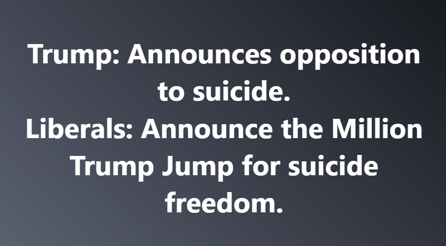 The Trump Jump? I find myself disturbing looking forward to it. Not because I relish the thought of a million people killing themselves, but at the fascination over a million humans acting like small rodents.