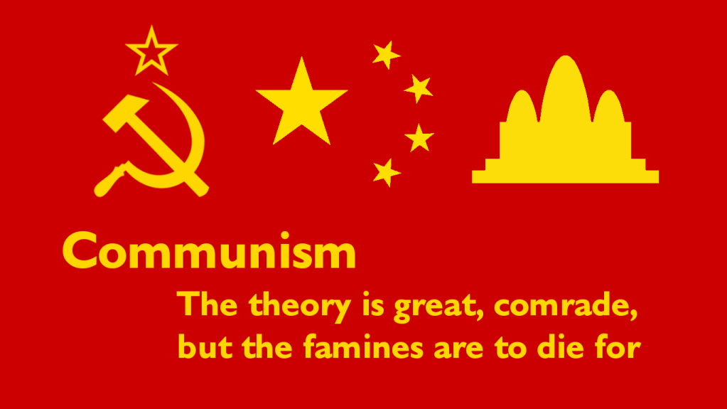 Communism appeals to an inner sort of child, that the world can be “fair” and that Big Daddy government will be the perfect Mother and Father, giving them everything that they want without any effort or labor.