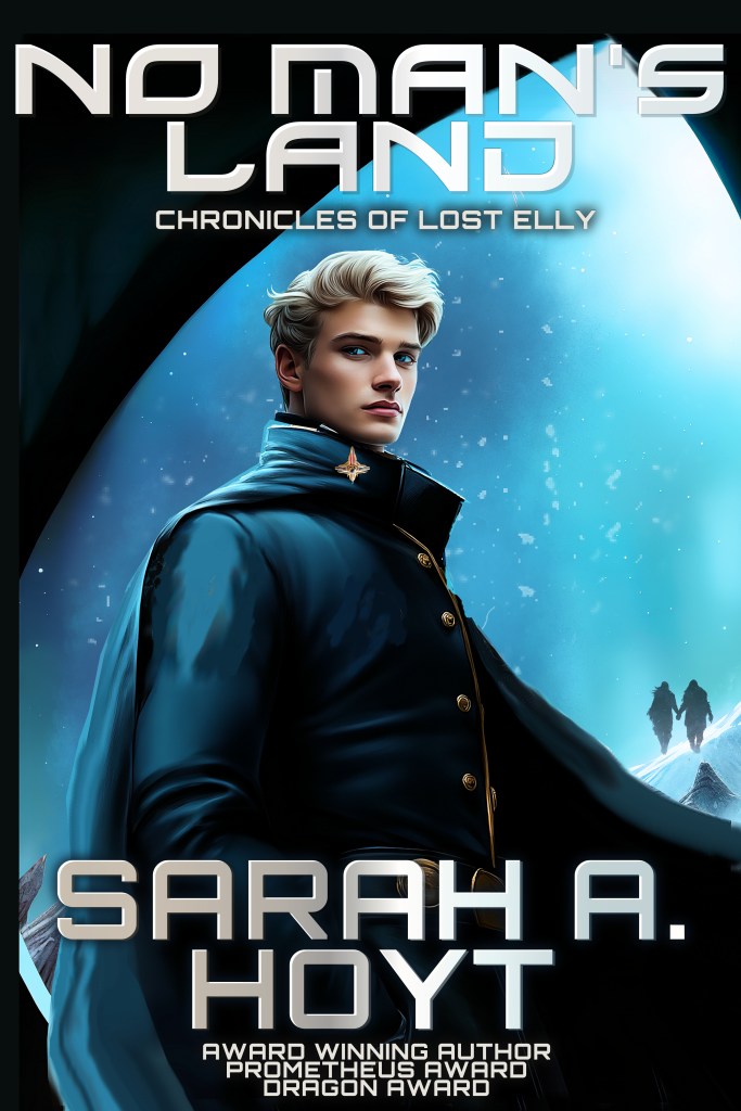 I wore the blue uniform with the half-cape once more, on a freezing winter day, in blowing snow, as I stood in the family cemetery next to the Earl’s palace of Aeris, and watched father’s coffin lowered into the grave, while space force captains and countless infantry stood at attention, wedged awkwardly between statues of angels and spacemen, of kings and imperious women holding aloft wreaths of victory.