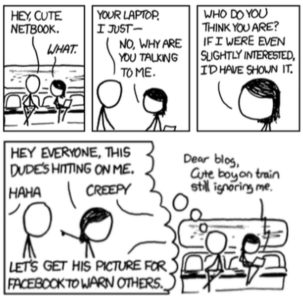 Re: the (looks like XKCD) comic strip about the guy not hitting on the girl with the laptop –