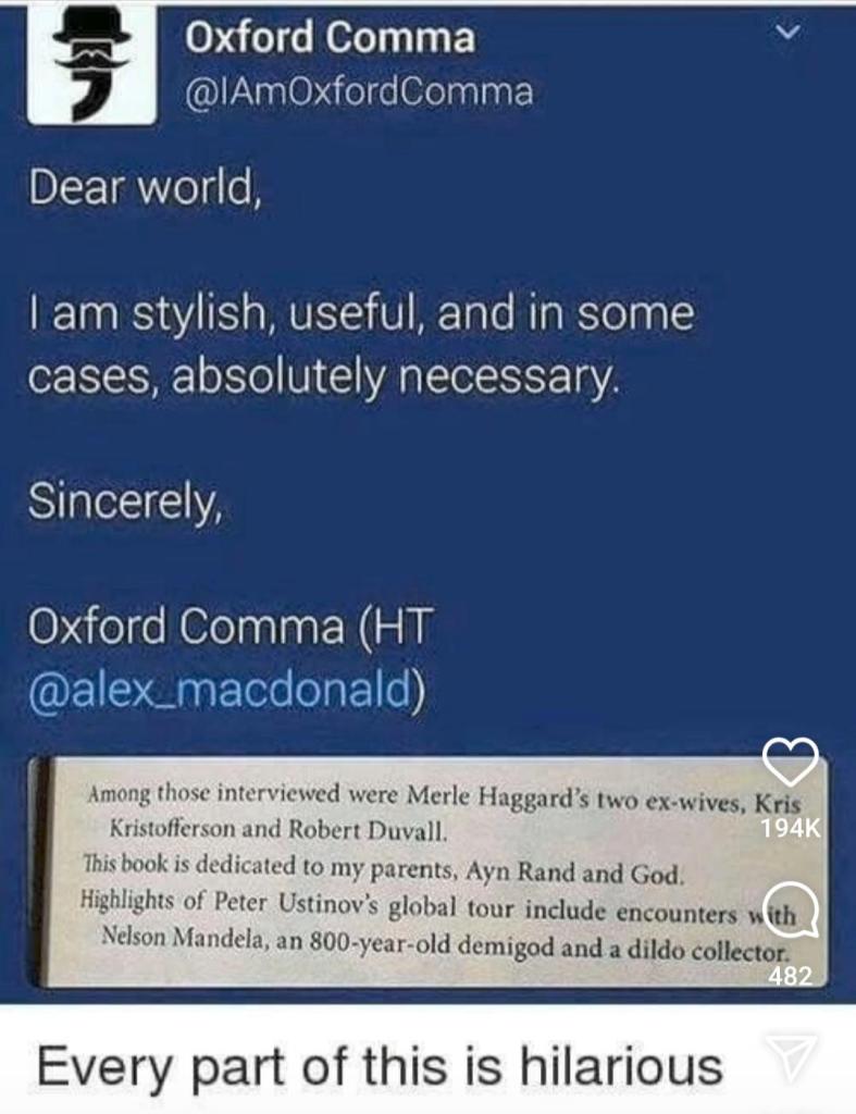 The Reader almost choked avoiding spitting coffee on his keyboard over the Oxford comma memes. Not sure what this says about the Reader…