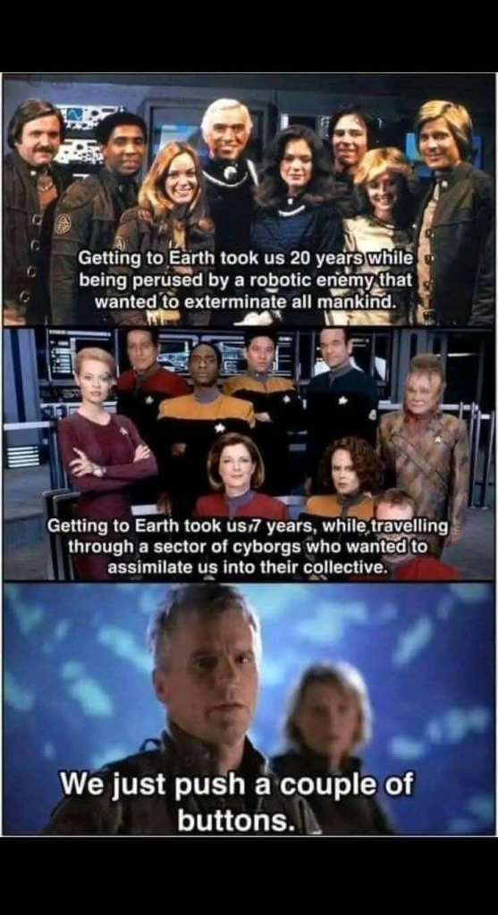 I’m still trying to wrap my head around why the Cylons were perusing the crew of the Battlestar Galactica. 😂