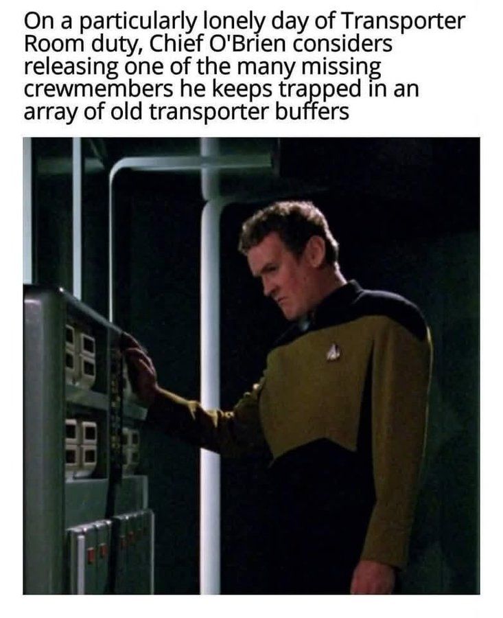 Reference the Chief O’Brian meme: I’m hardly the first to bring it up, but is the good Chief the only enlisted man in Starfleet? Also, why would you need a senior NCO or an officer to operate the transporter? That sounds like something an ordinary sailor would learn in A-school.