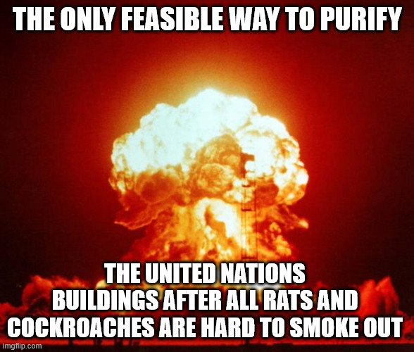There is the biblical tradition that upon defeating the Phoenecians Jehu turned the temple of Ba’al into a public latrine. Perhaps turn the UN building into a set of giant restrooms?