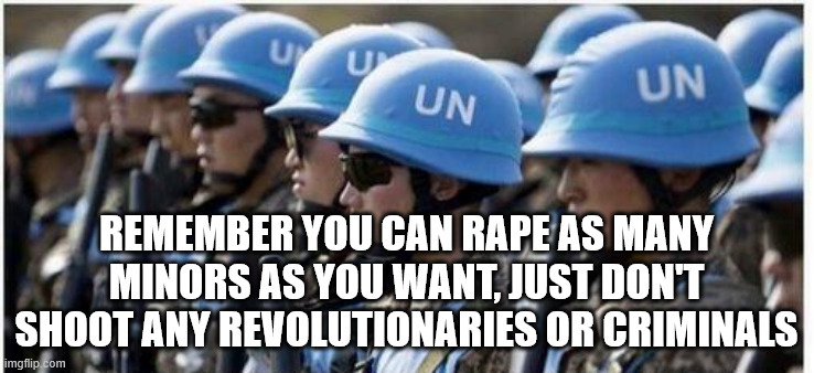 The US has had some authority to stop wars, because other nations know we’re the 800 lb gorilla and we’re willing to pound them into sand. UN peacekeepers are most notably dangerous to minors under the age of consent, which are the only thing they do in fact pound.