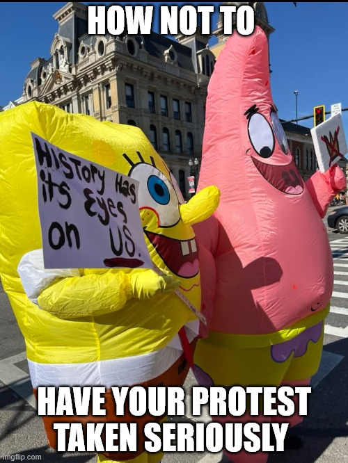 The inflatable costumes are a specific ploy so that still photos of the Fa side look silly and goofy and juvenile, while simultaneously they are blinding federal officers with illegally high powered lasers and launching frozen water bottles at them with intent to cause serious injury.