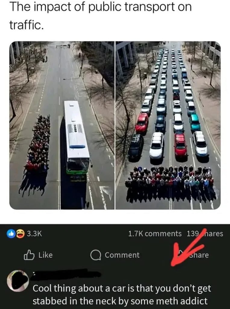 The most fundamental problem with mass transit is that the people pushing it like they were a blind OCD autist will also to a significant degree go full murderous narcissist wackjob whenever enough people are not doing exactly what they desire. Private vehicles are a pretty necessary backup whereever mass transit is pushed, if they are at all affordable.