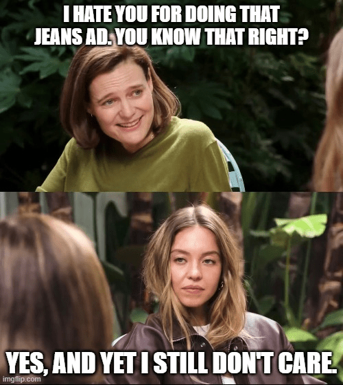 Well, to be honest, I almost commented on the Sydney Sweeney meme, but I got distracted somewhere between the Variety and the Lifetime.