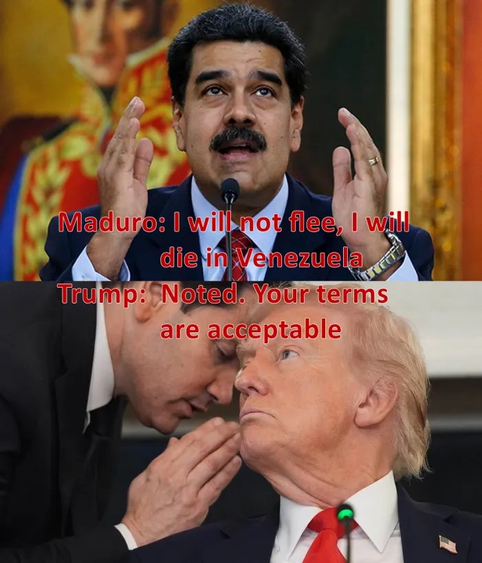 “So Mister big Dictator tell me again how Trump is just a clown who won’t do anything?” Mrs. Maduro asked.