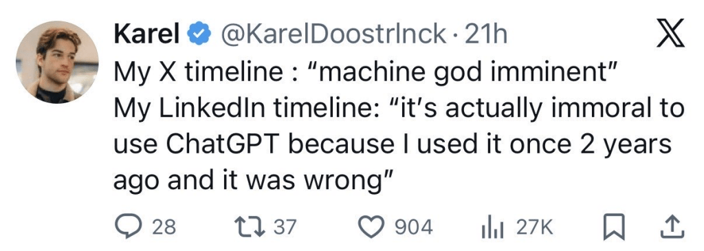 For some reason, a good half of everything I see on linkedin is crazy people, and the other half is people I don’t know about making polite noises.