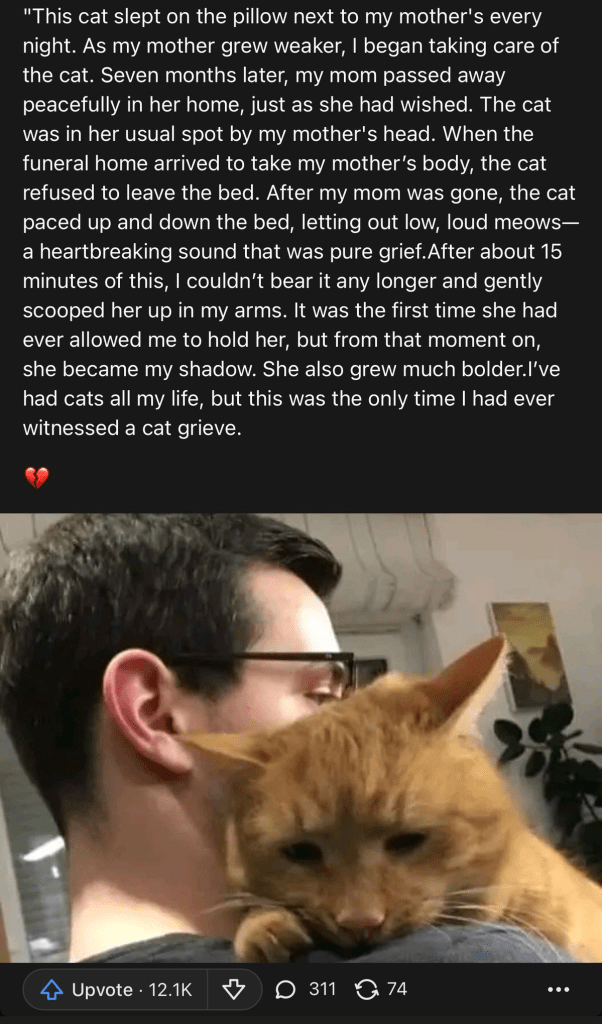 The poor grieving kitty! 😭